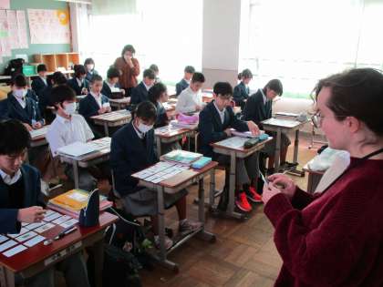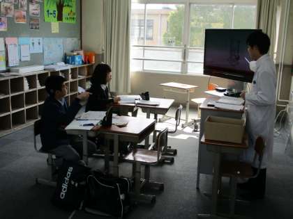 5組は理科,3組は英語,ALTのクリスティーが来てくれています。