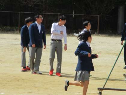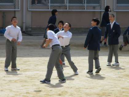 走り回っている人,ボールを追いかける人,人の動きを見ながら話に夢中な人など,様々です。