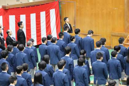 国歌を厳かに歌い,校歌はいつもの通り元気よく歌いました。
