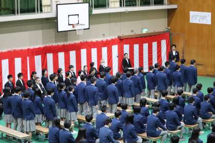 担任の呼名に対して,全員が大きな声で返事を返しました。この部分で会場に感動が沸き起こりました。素晴らしい担任と生徒の“声のキャッチボール”を見せてもらいました。