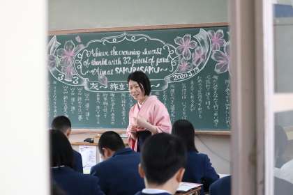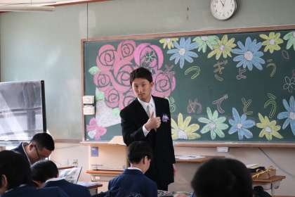 式後,カメラが3年生の教室の様子を撮りに行きました。