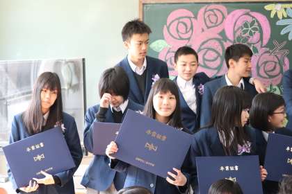外では保護者や式に参加できなかった後輩たちが待っています。