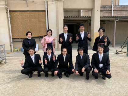 3年の教職員が記念撮影です。お疲れさまでした。今日は素敵な卒業式ができました。3年間,いろいろなことがあったけれど,頑張ってきたことが報われました。