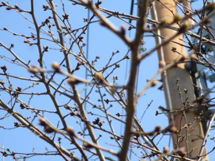 校門の両側の桜は,そのつぼみを少し膨らませてきました。