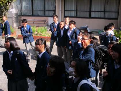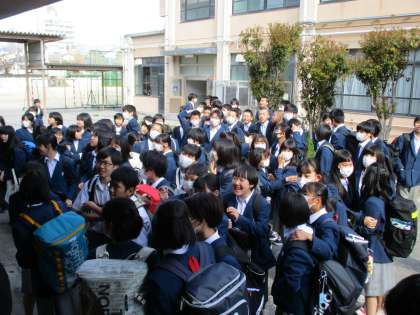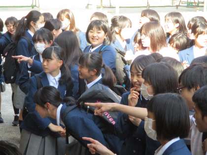 密集状態を避けるため,学年を離して発表したのですが,生徒同士がどうしてもくっつきたがります。注意はしますが仕方ないですね。