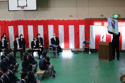 学校長式辞です。みんな,しっかりと聴いてくれていました。