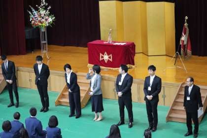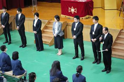 1年担当教職員の紹介です。その後,1年の学年主任より新入生に対してメッセージがありました。