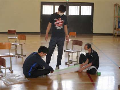 このマスクは,文部科学省から配布されたもので,各学校の生徒に1人2枚ずつ配布される予定です。そのうちの1枚が届いたので配布することにしました。