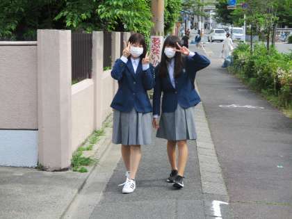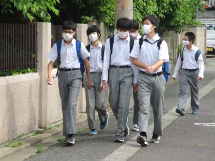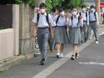 久しぶりに出会った生徒たち,元気よく挨拶をして校門を通っていきました。