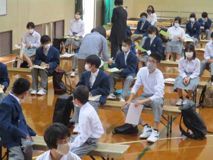 学年主任が身につけているのは,口元がはっきりと見えるシールドです。
