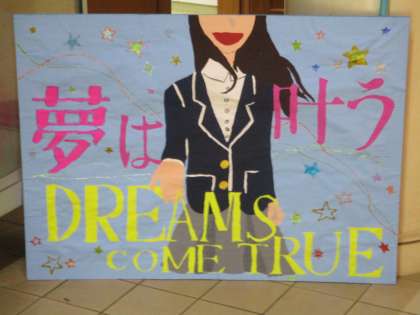 遅くなりましたが,生徒の登校を機に,今年度のキャッチフレーズをもとに美術部が描いてくれたポスターを校長室前に飾りました。