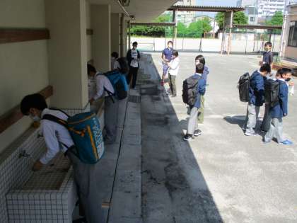 みんなが時間を調節して来るようになったので,手洗い場が混雑しなくなりました。