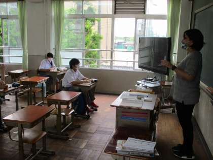 1組は国語。今年来られた先生で,このクラスの担任です。