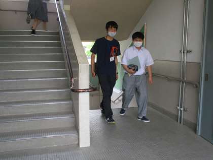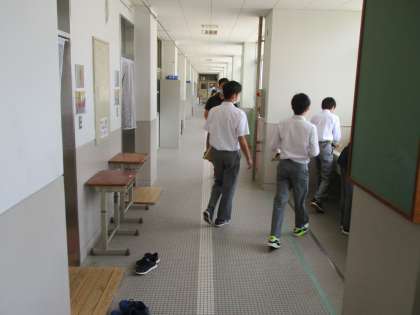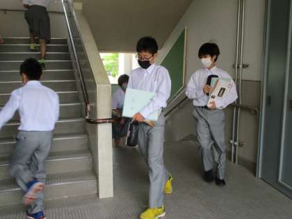 本館にある特別教室から4階まで上がる1年生は,5分間では大変なようです。