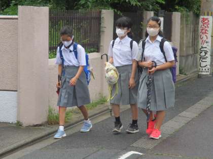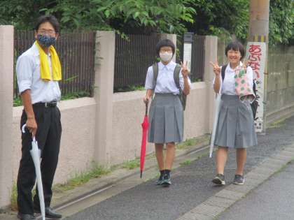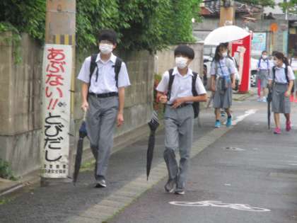 生徒が登校する時間帯はポツポツ降る程度で,傘は持っていても差さない子が大半でした。登校時間帯に降らなくて良かったです。
