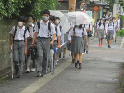 生徒たちもみんなで登校できることに,ワクワク感を持っているように思えます。
