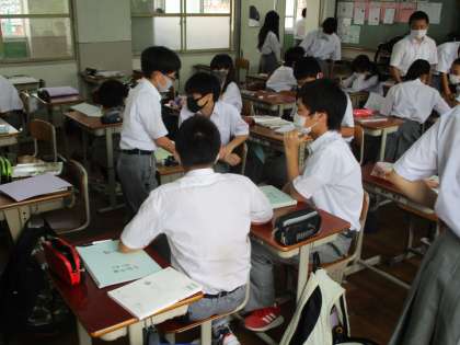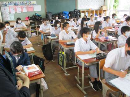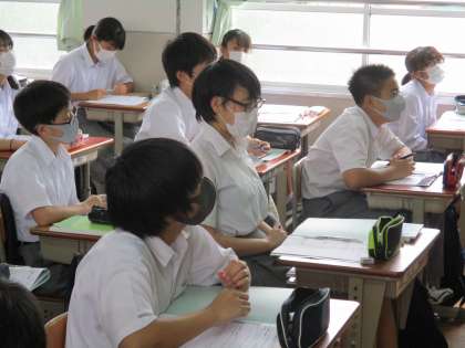 授業が始まりました。1組は数学です。昨日,方程式だと書きましたが,式の展開の間違いでした。