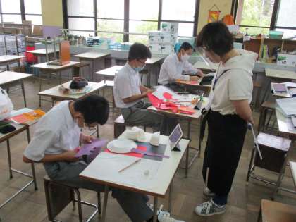 5組は美術です。抽象画を立体で表現するとのことでした。さて,どんな風になるのでしょうか。