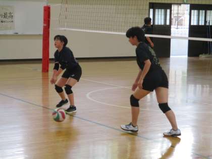 体育館ではバレー部が練習再開です。