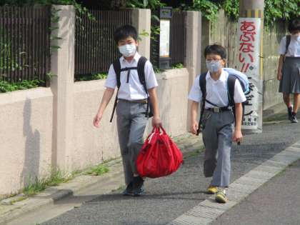 こういう時期ですから,学校で水道水を飲むのはできるだけ控えさせたいと考えます。 体育の時間や部活動の時間には,水筒を持ってくるように指示しています。たっぷりと入る大きめの水筒をもたせてください。