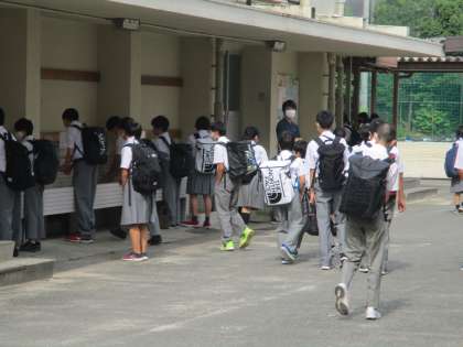 今日も,先生が各階の手洗い場を使うよう指導していましたが,各人がもう少し早く家を出るように心がけてましょう。