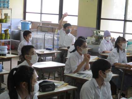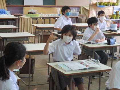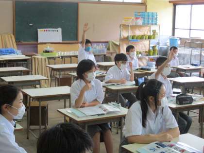 絵文字の制作に入っています。今日はイメージを膨らませる学習です。「目」という文字から,皆でどんどんイメージを膨らませていました。