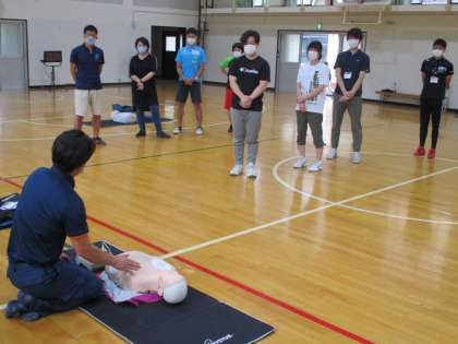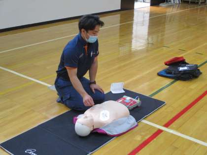 本日,上京消防署の方に来ていただいて救命救急の研修会を行いました。