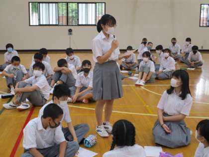 車いすに乗ている生徒なので座ったままでの発言ですが,しっかりと思いを届けることができました。