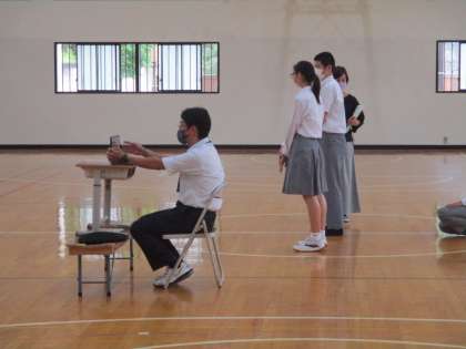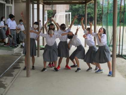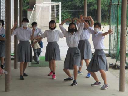 2年の女子たちが,渡り廊下で“だるまさんがころんだ”をやっていました。写真を撮ろうとすると,面白い格好で動きを止めます。それが可愛くて!