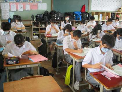 早く思いっきり声を出して英語の読みや会話ができるようになってほしいものです。この学年の子たちの良さが失われてしまうのではないかと心配します。