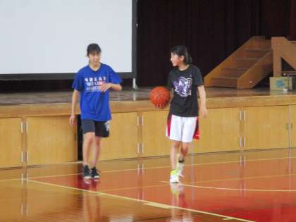 講堂では女子バスケットボール部が練習をしていました。本当に上手になったものだと感心させられます。