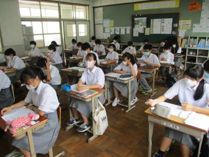 1時間目に3・5組,2時間目に1・2組の生徒が登校して学習に取り組んでいます。