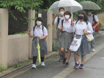 雨が落ちているのに傘を手にして登校する生徒も少なくありませんでした。