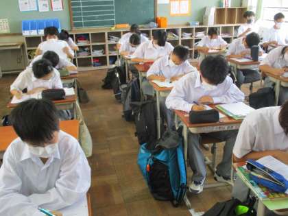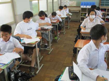 実は,1年と3年とを2人の先生が教えています。英語の先生の一人が進路指導主事であることがその主な理由です。