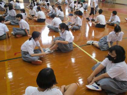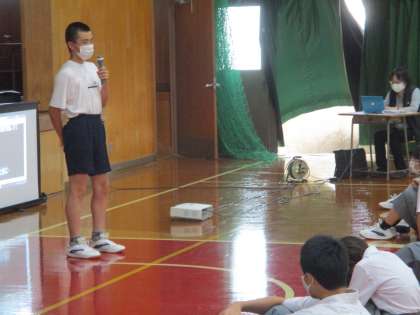 6時間目,2年がカナリータイムに地域で会社を経営しておられる方をお招きして話を聞きました。