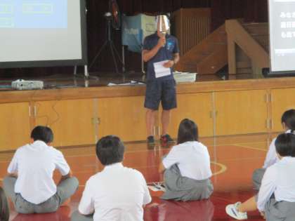 5時間目,3年は修学旅行に向けて学年集会をもちました。