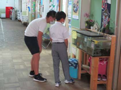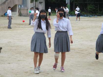 小雨が降る中でしたが,生徒たちは元気にグランドで遊んでいました。