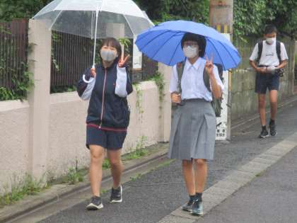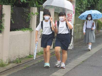 さて,小雨が降る中,新しい一週間が始まり,生徒たちは元気に登校してきました。