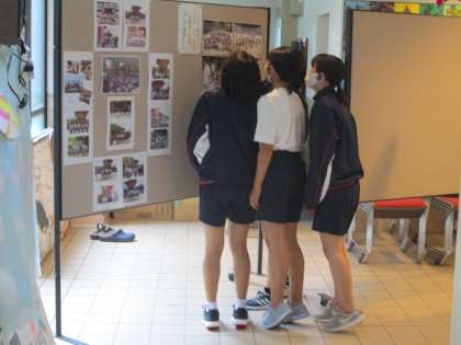校長室前の写真は去年の修学旅行や校外学習のままです。だって1学期の大きな行事はまだ何もできていませんものね。
