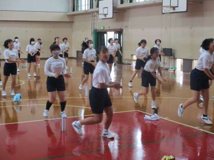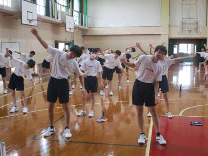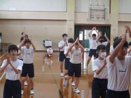1・2組は体育,今日もエアロビクス,たっぷり汗をかきましょう。