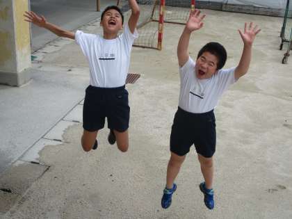グランドでは,1年生と一部の2年生,それに6組の生徒が遊んでいました。