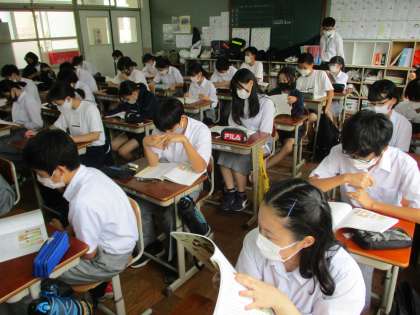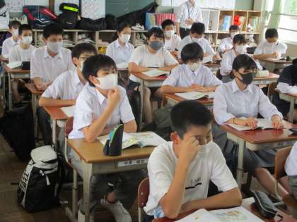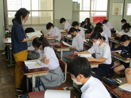 2年と3年の各教室を時間をかけて観て回りました。2年は,3組を2組の担任の先生が授業していました。