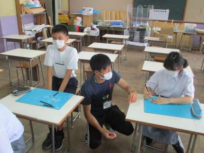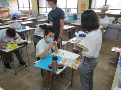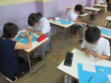 消しゴムを削って作品を作っています。楽しい彫刻です。