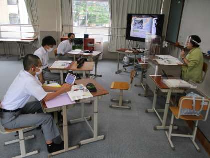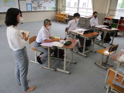 取材の方は,特に5組の授業に関心をもたれているようでした。