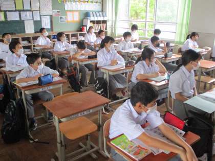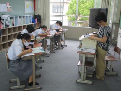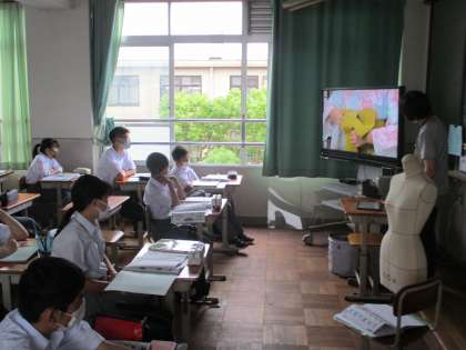 家庭科の時間には浴衣の着方をVTRで学習していました。例年和装教室があって浴衣を着る機会があるのに,今年度はこんなことでも残念です。