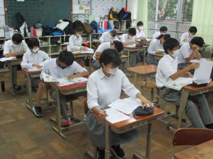 5組は理科,3組は社会です。社会では米騒動を学習していました。みんな真剣そのものです。
