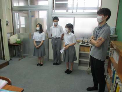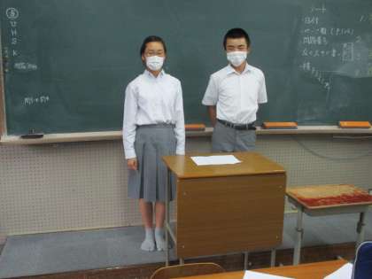 2年の評議員たちが集まって,生徒総会での学級目標発表の準備をしていました。
