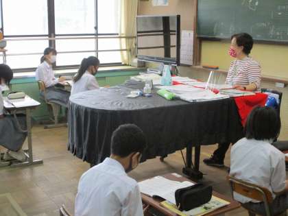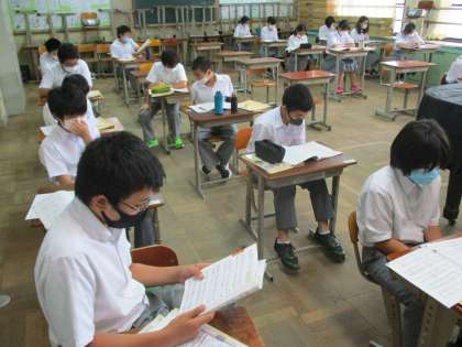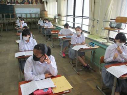 1組は音楽,合唱の練習をしていました。美しいソプラノの声を出す人が居ました。楽しみです。