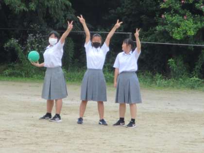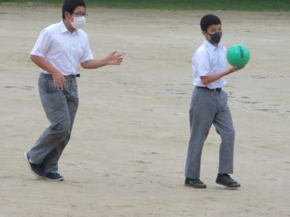小雨が降っていましたが,多くの生徒たちがグランドに出てきました。