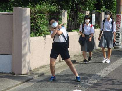 今日も暑いので,上手くマスクを外して口の周りの温度上昇を防ぐ工夫をしましょう。